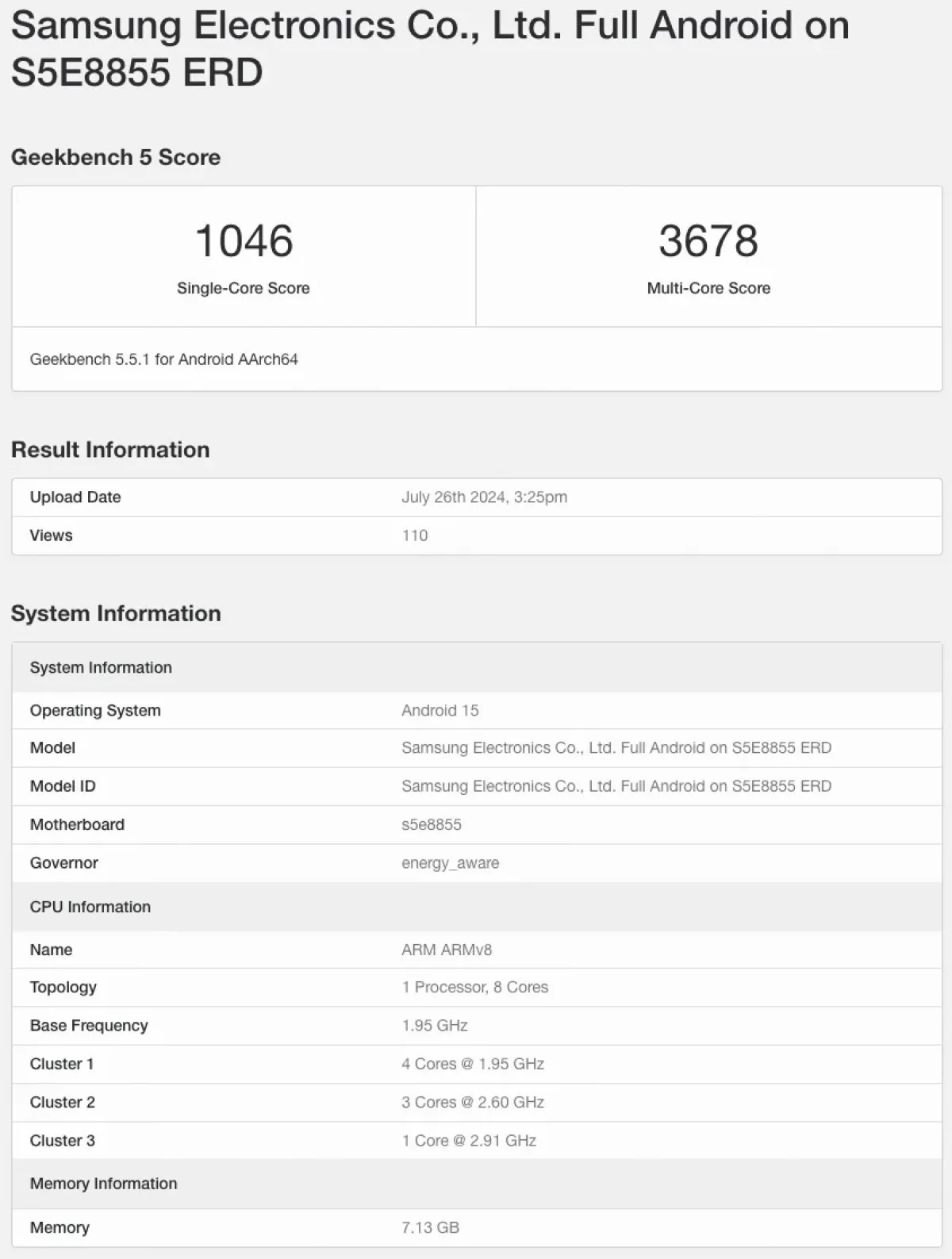 - CPU 구성: 4x Cortex-A720 + 4x Cortex-A520 (루머)