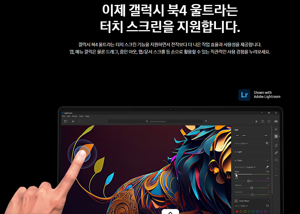 터치패드에 더해 화면 직접 터치를 이용해 확대·축소, 문서 스크롤 등 스마트폰과 태블릿에서 경험했던 익숙하면서도 직관적인 사용자 경험을 전 라인업에서 모두 제공합니다.