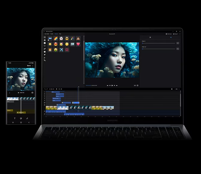 - 스마트폰이나 태블릿에서 편집하던 영상을 PC에서 이어서 작업할 수 있는 '삼성 스튜디오'