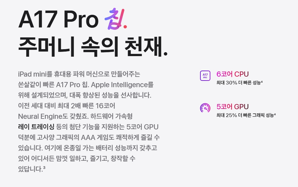 [3] 티스토리 - 아이패드 미니 A17 Pro 몇 세대? - 리뷰장이 (https://seoulallinfo.tistory.com/entry/%EC%95%84%EC%9D%B4%ED%8C%A8%EB%93%9C-%EB%AF%B8%EB%8B%88-A17-Pro-%EB%8F%84%EB%8C%80%EC%B2%B4-%EB%AA%87-%EC%84%B8%EB%8C%80%EC%9E%84-%EC%B9%98%EB%AA%85%EC%A0%81%EC%9D%B8-%EB%8B%A8%EC%A0%90-%EC%9A%A9%EB%8F%84-%ED%81%AC%EA%B8%B0)