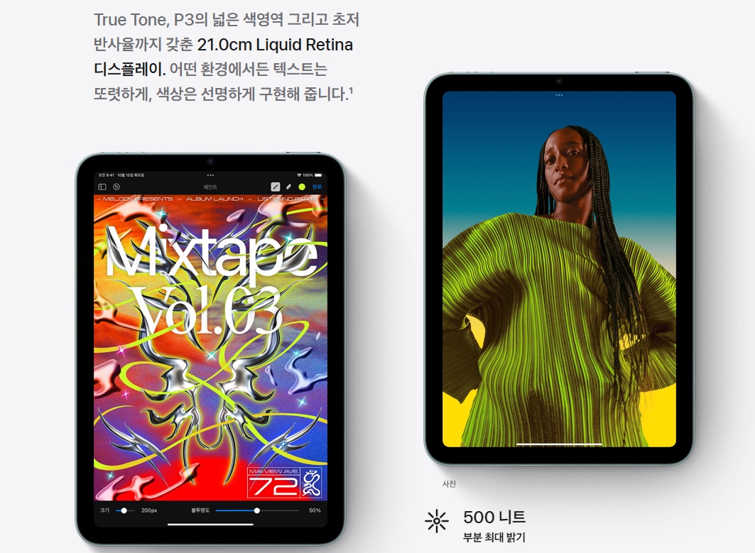 아이패드 미니 7세대는 슬림하고 세련된 디자인을 자랑합니다. 무게는 297g으로 가벼워서 한 손으로도 쉽게 들 수 있습니다. 화면은 8.3인치 Liquid Retina 디스플레이로, 생생한 색감과 뛰어난 해상도를 제공합니다.
