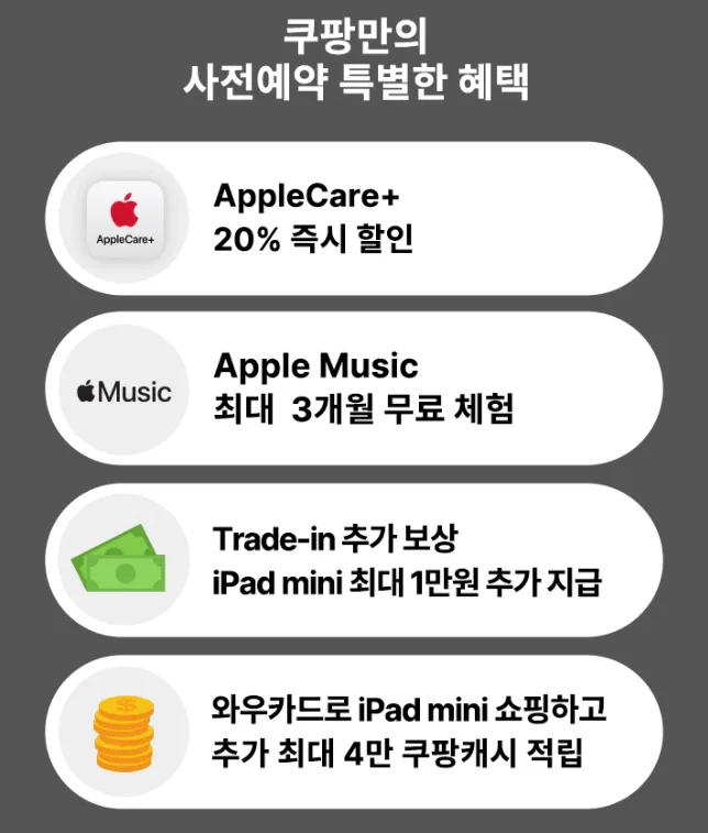 아이패드 미니 7세대를 사전예약하면 다양한 혜택이 제공됩니다.