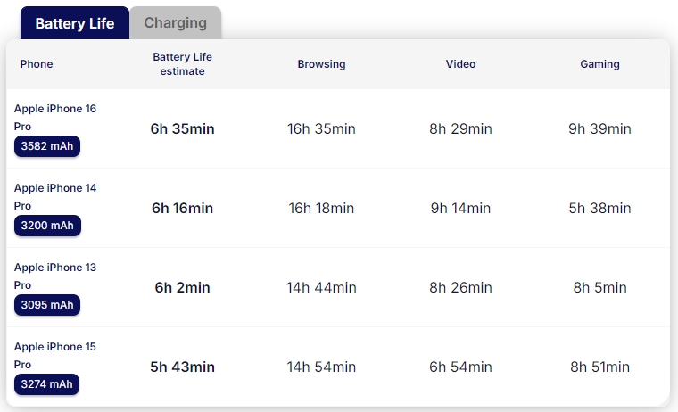 아이폰 16 Pro는 더 커진 배터리 용량 덕분에 이전 모델보다 더 긴 사용 시간을 제공합니다. 또한, MagSafe 무선 충전 속도가 25W로 빨라져 더욱 편리하게 충전할 수 있습니다. 하지만 유선 충전 속도는 여전히 20W로 개선되지 않았습니다.