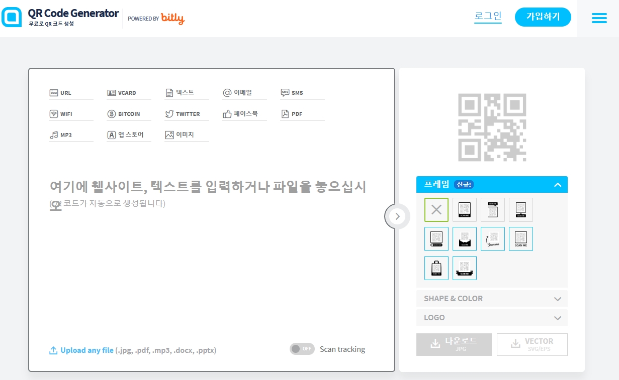 세계적인 단축 URL 업체인 비틀리에서 운영하는 서비스로 다양한 디자인 옵션과 높은 품질로 QR 코드를 생성할 수 있어 유용해요. 한글도 지원하기 때문에 무리없이 사용하실 수 있어요.