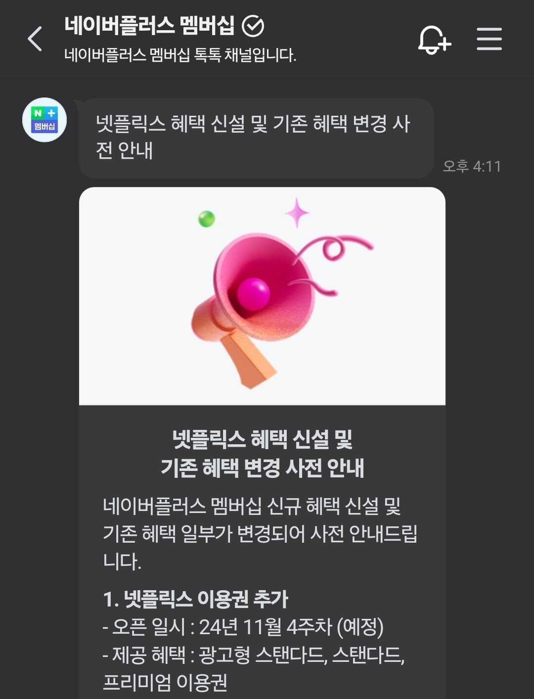 [3] 연합뉴스 - 11월부터 네이버플러스 멤버십으로 넷플릭스 볼 수 있다 (https://www.yna.co.kr/view/AKR20240930028400017)